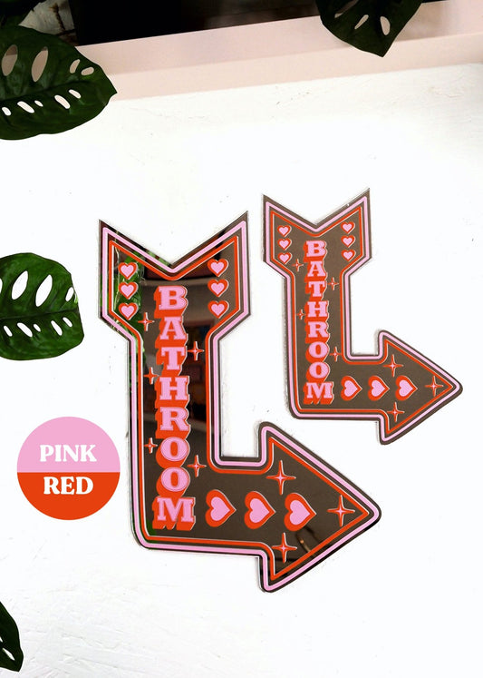 • Retro Bathroom Arrow Mirror - Pink & Red