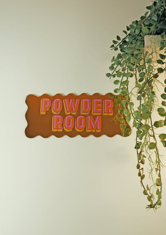 • Powder Room Wavy Mirror Sign - Warm Gold