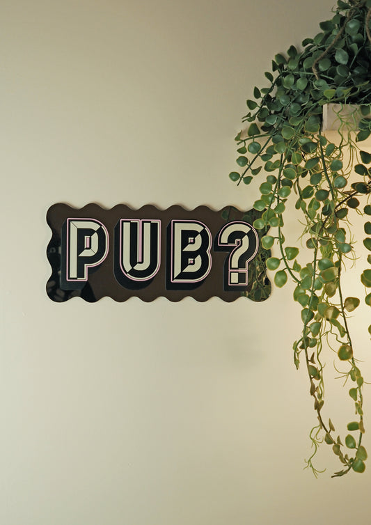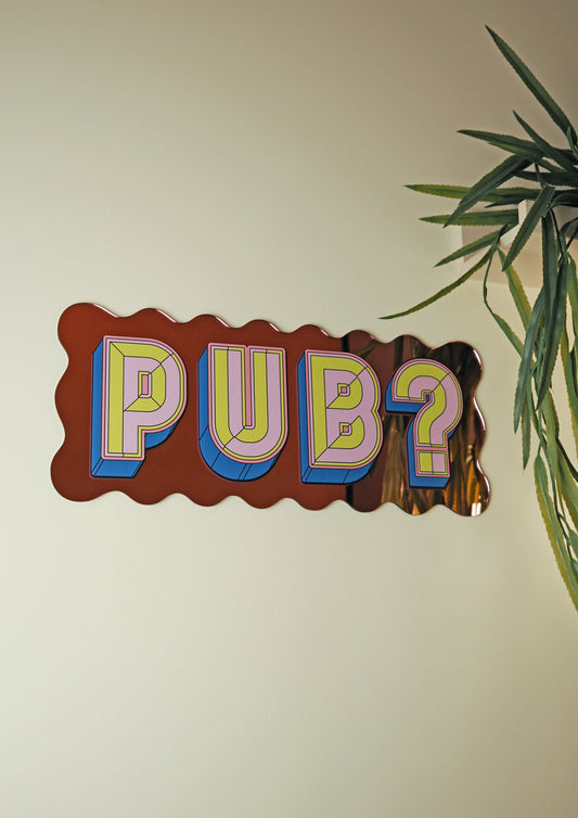 • Pub? Wavy Mirror Sign - Bold Bronze