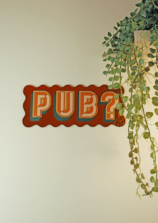 • Pub? Wavy Mirror Sign - Groovy Orange