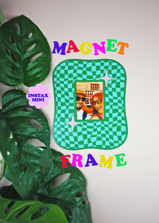 • Square Blob Checkerboard Magnet Frame - Green & Blue