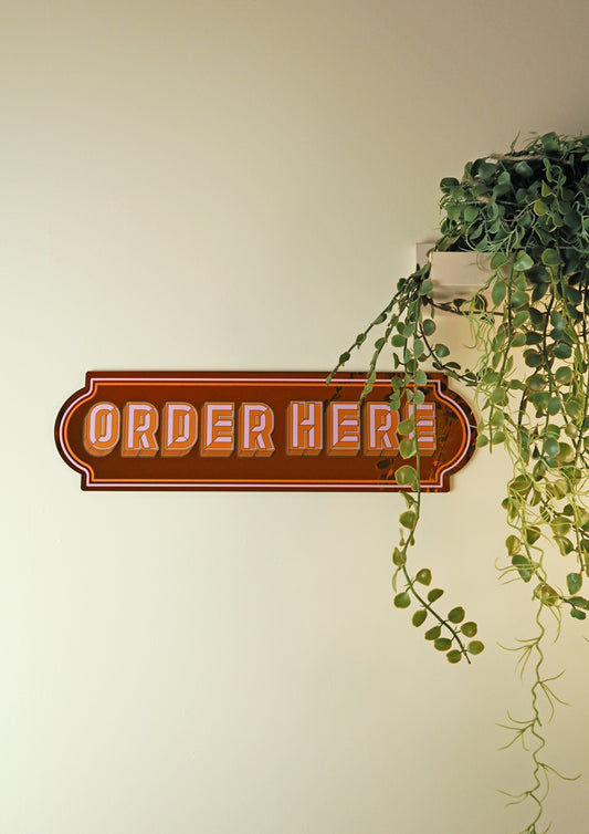 Order Here Rectangle Sign - Groovy Orange