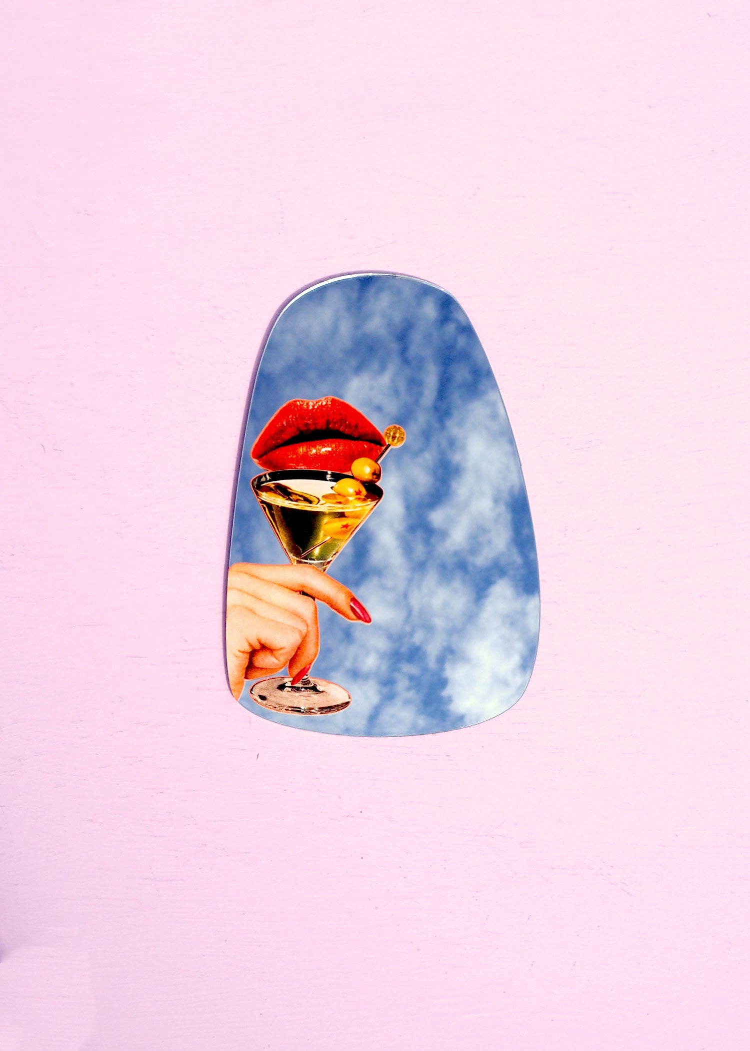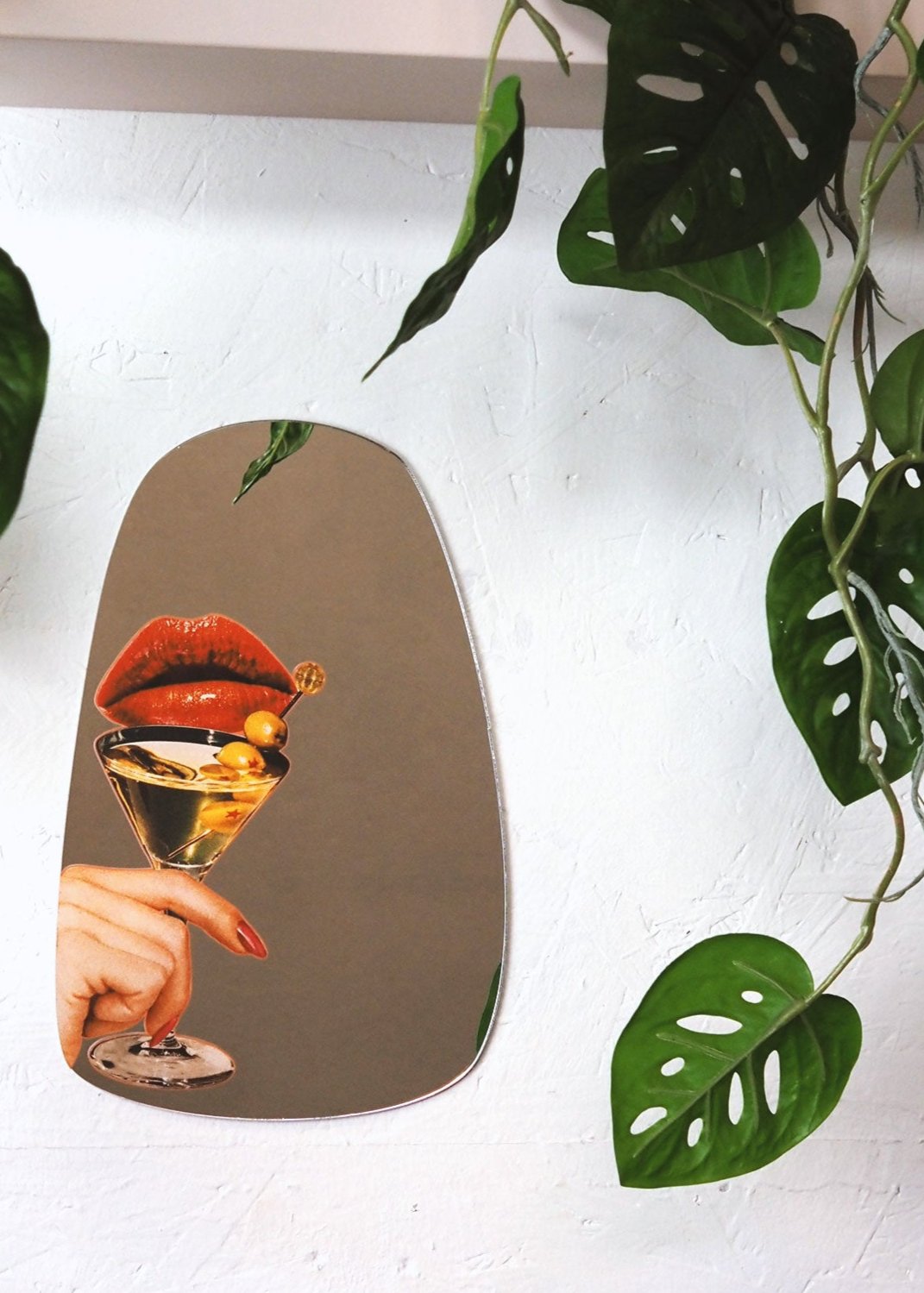 Get ready for some groovy vibes with the Kisses & Cocktails Mirror! This retro 70s shaped mirror features a kitsch collage of cocktails & lips, adding lots of fun to any wall & selfie. Cheers to looking fabulous!