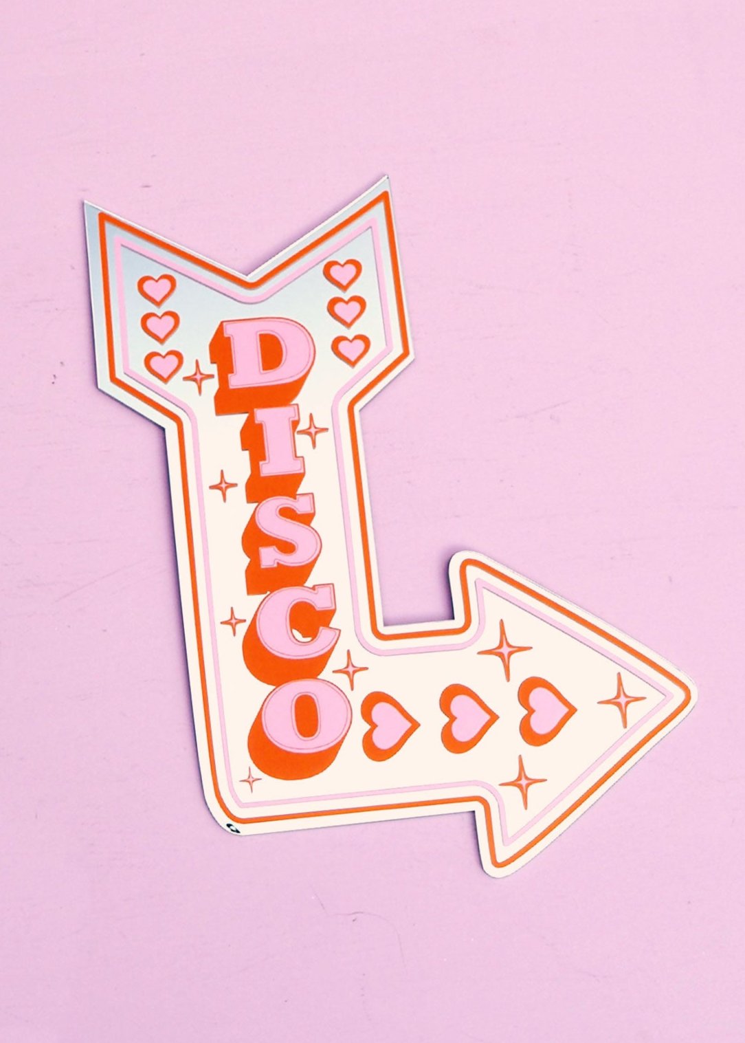 Add a touch of nostalgia and quirkiness to your home with our Retro Disco Mirror, available in two sizes. Featuring a neon sign-inspired design with a playful arrow shape in pink and red, it's a fun addition to any room. Inspired by the neon signs of Vegas!