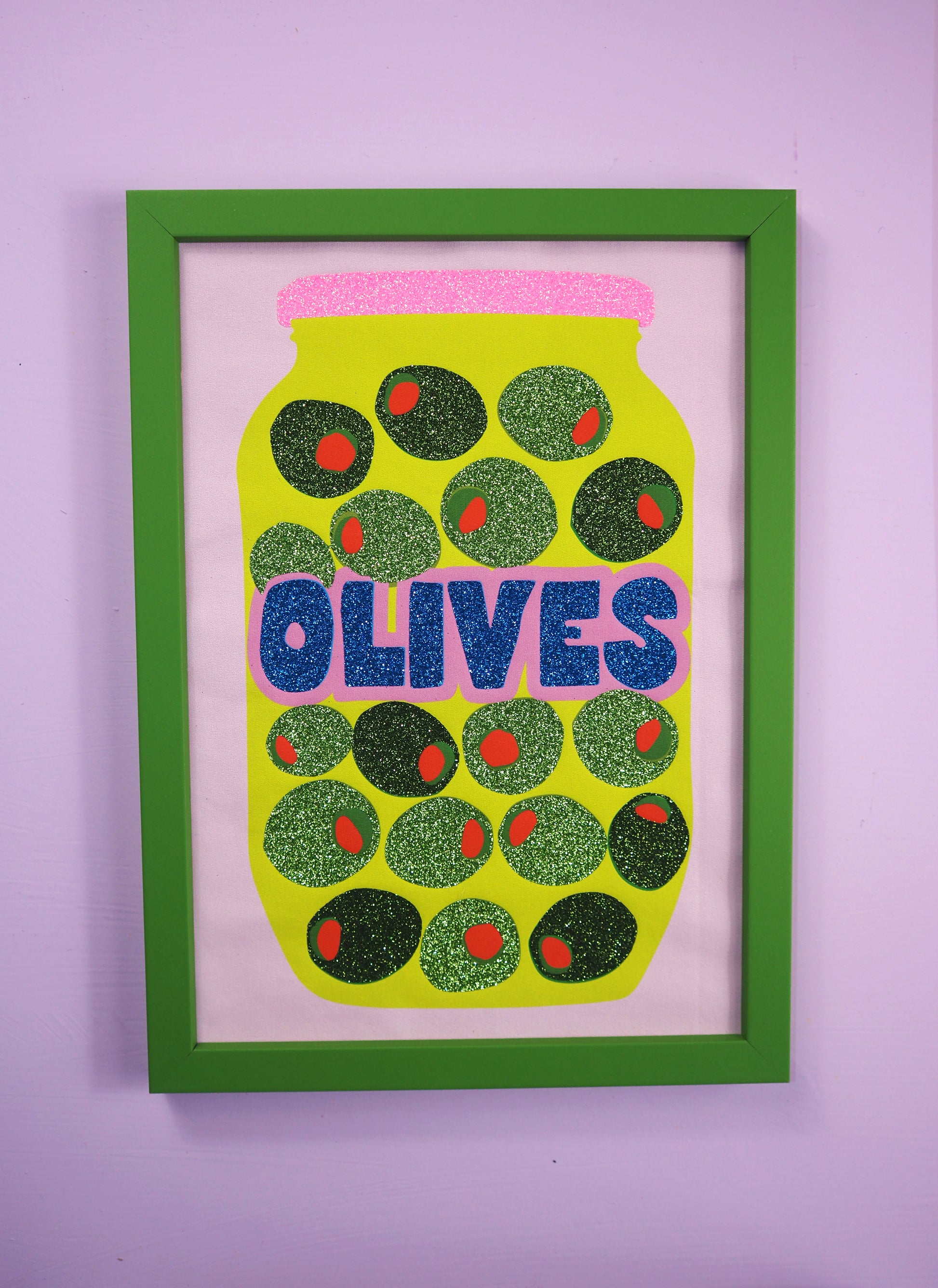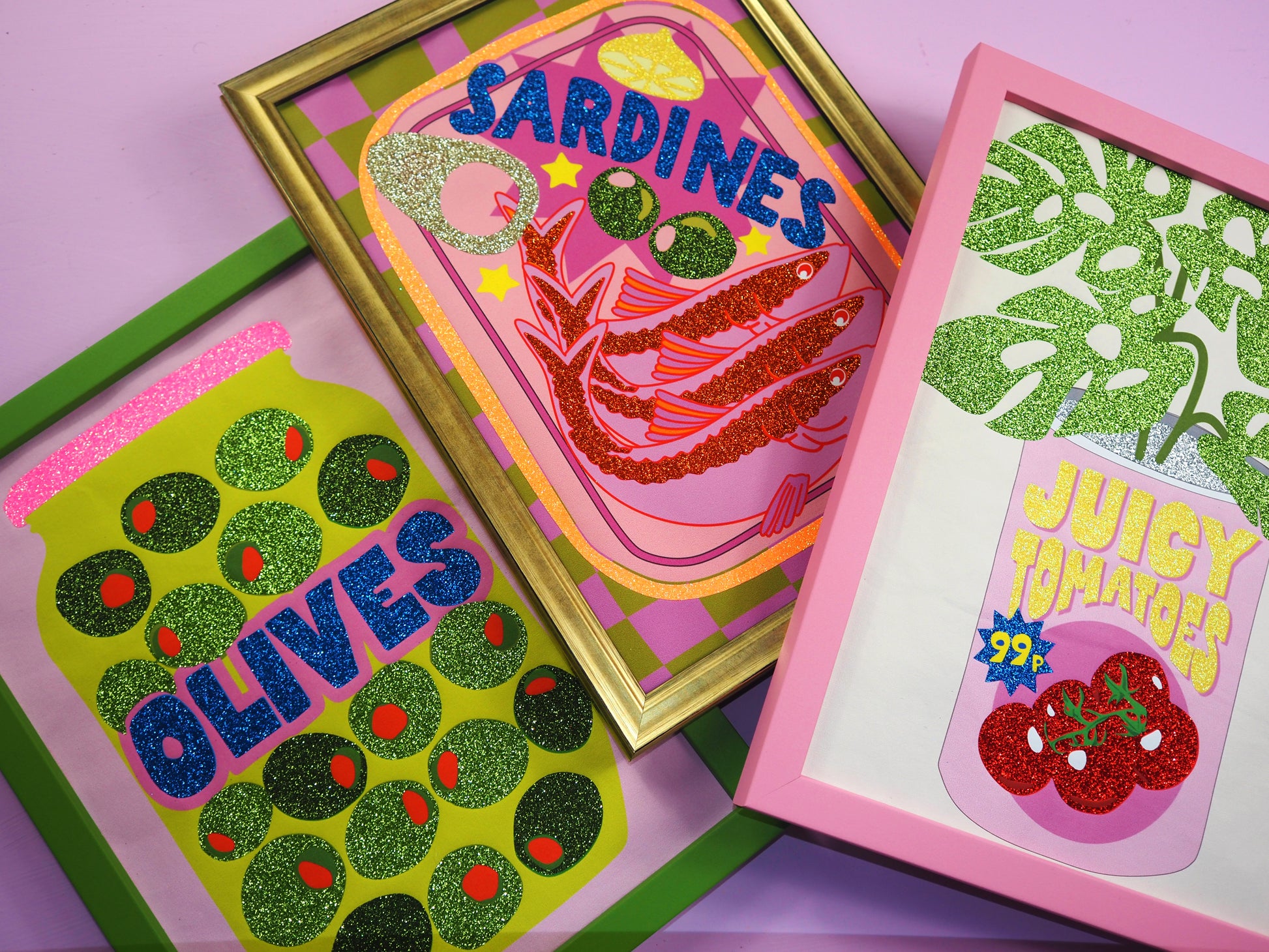 Bring some sparkle to your walls! Each glittery fabric print is handmade in our studio with DTF printing and high-quality glitter vinyl. Made with soft cotton fabric, these prints are super glittery and gorgeous.