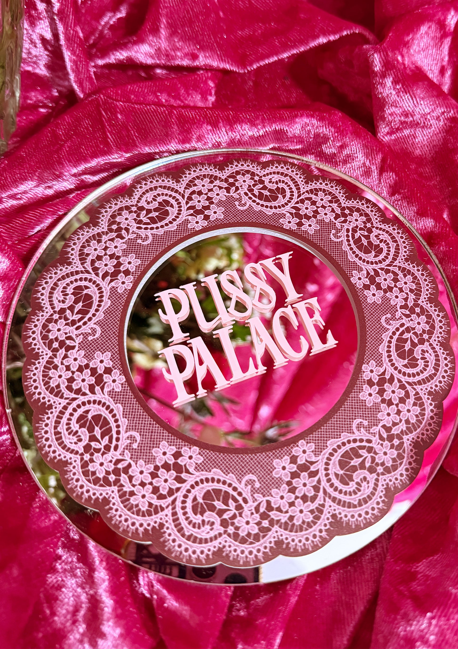 Add a playful, romantic touch to your space with this collection of mini mirrors, each featuring a retro lace style border and cheeky phrases like “Spicy,” “Pleasure,” and “Feral.” Perfect as wall fillers, shelf accents, or vanity décor, these mirrors bring subtle naughtiness and charm to any room.
