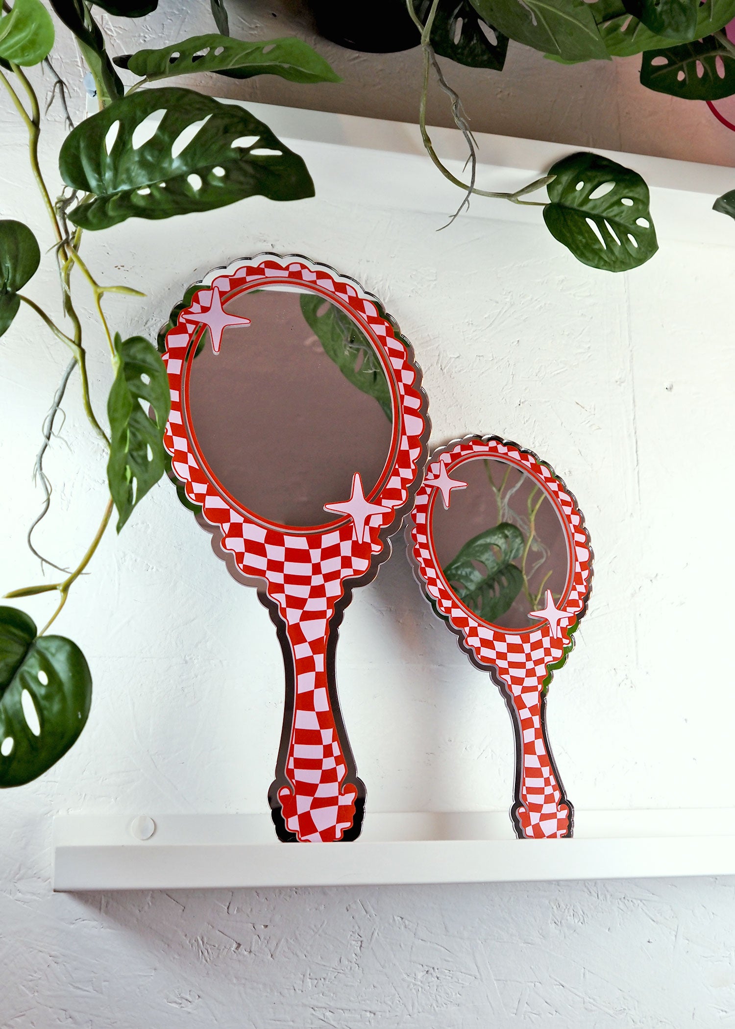 Retro Vanity 'Hand Held' Mirror - Red & Pink